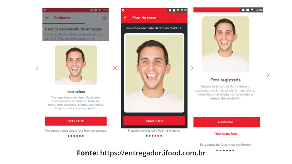 Uma selfie nítida é também solicitada para reforçar a segurança tanto para entregadores quanto clientes.