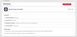 - Para participar, acesse a página do leiloeiro através do botão “Participar do leilão”;